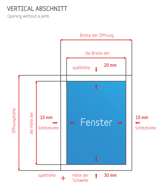 BEIM AUSMESSEN DER FENSTERHÖHE SOLLTE MAN EIN EINBAUSPIEL AM UNTEREN TEIL DES FENSTERS, UNTER DEM DAS 30 MM HOHE MONTAGEBAND EINGESETZ WIRD, SICHERSTELLEN!