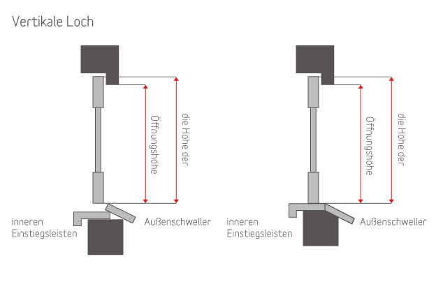- Die Öffnungshöhe messen und sie um 50 mm verringern (20 mm für die Spalte oben und 30 mm für das Montageprofil unten)